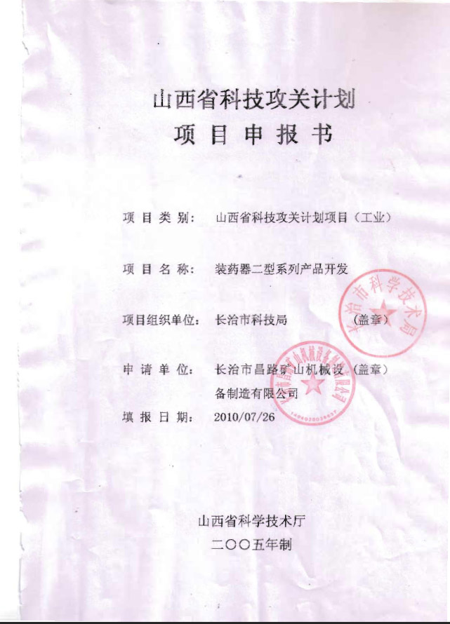 裝藥器二型開發(fā)科技局申報(bào)